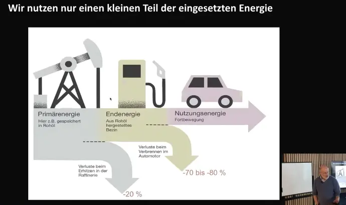 Die Ineffizienz der Verbrennung und fossilen Energien.