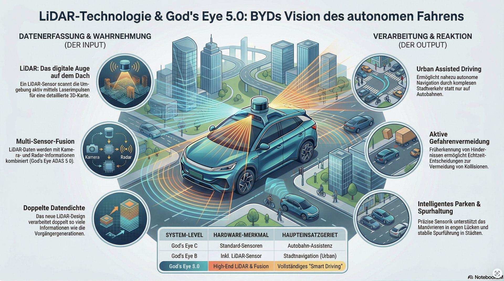 - Assistenzsysteme: Höhere Ausstattungslinien verfügen über das "God's Eye" ADAS-System (Version 5.0) inklusive LiDAR-Sensor auf dem Dach für autonomes Fahren in Städten.