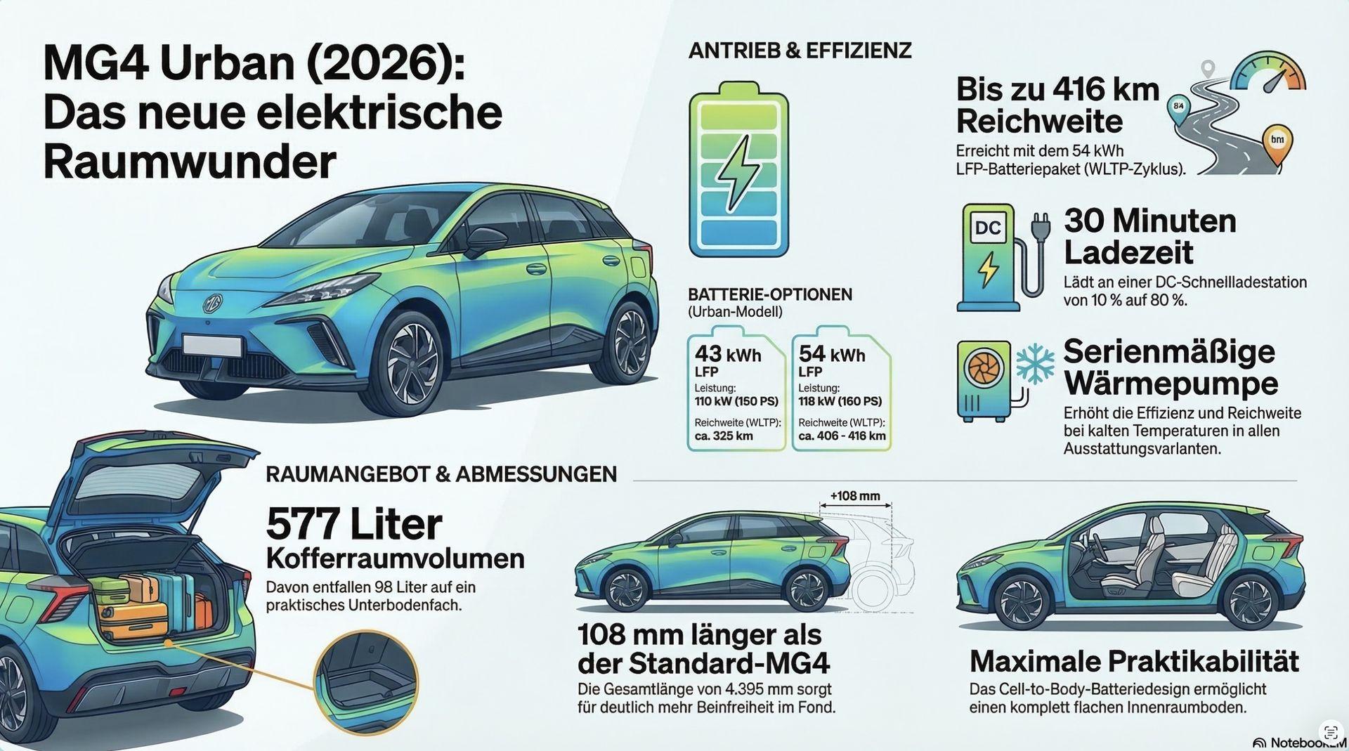 Die Urban-Version des MG4 für das Jahr 2026 unterscheidet sich technisch grundlegend vom Standardmodell und ist als preisgünstigere, praktischere Alternative konzipiert.
